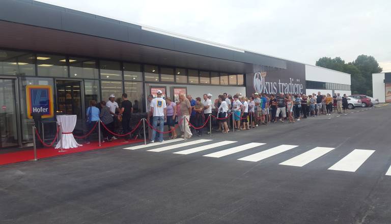 Obiskovalci čakali v vrsti pred vrati novega Hoferja