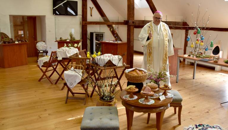 FOTO: Škof Štumpf blagoslovil razstavljene pirhe in košare velikonočnih jedi