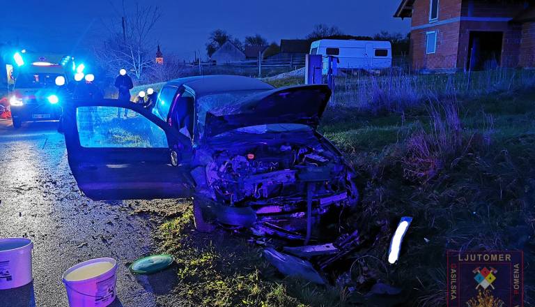 FOTO: Z avtomobilom v jarek, ena oseba poškodovana