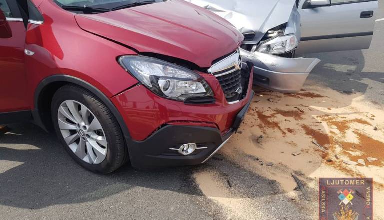 Trčenje dveh avtomobilov, gasilci iz vozila rešili ukleščeno osebo