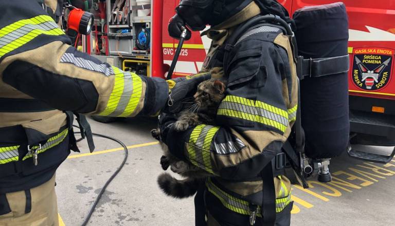 FOTO: Zagorelo v stanovanjskem bloku v Murski Soboti, gasilci rešili mački