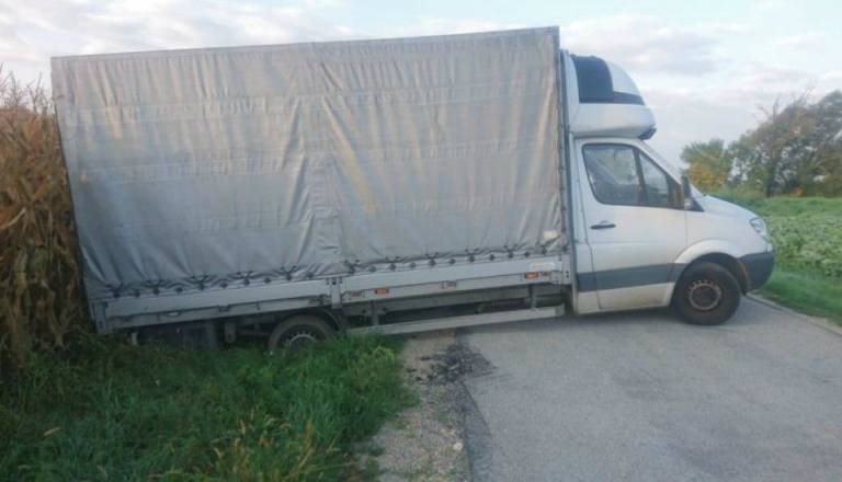 FOTO: Zgodba se je ponovila, v ostrem zavoju ceste obtičal isti prevoznik kot lani