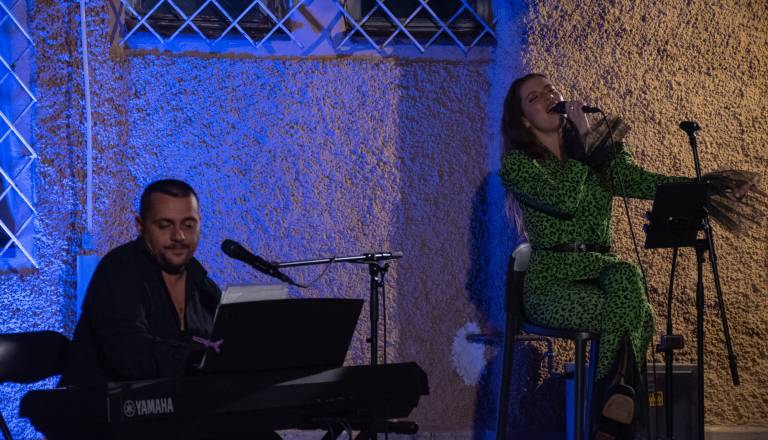 FOTO in VIDEO: Beletrinini trubadurji z Majo Keuc pričarali literarno-glasbeni večer na Skritem dvorišču
