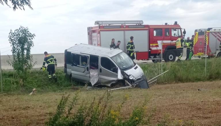 Voznik na pomurski avtocesti zapeljal z vozišča in trčil v ograjo, huje poškodovan otrok