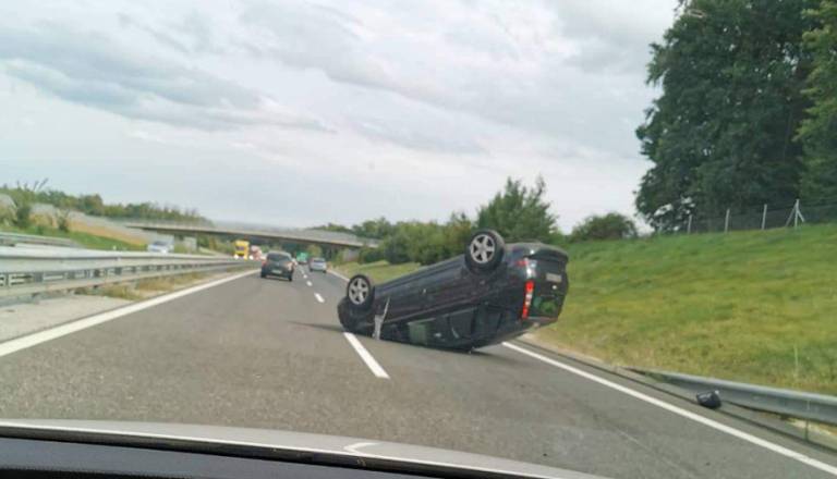 Avtomobil na strehi oviral promet na pomurski avtocesti