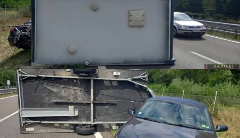 FOTO in VIDEO: Na avtocesti prišlo do prometne nesreče, s ceste je odneslo vozilo