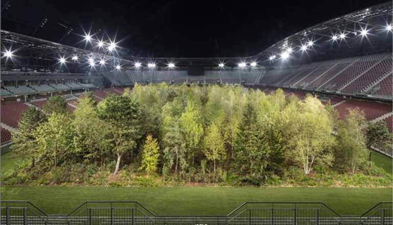 FOTO: Preverite, zakaj so na nogometnem stadionu začasno postavili tristo dreves