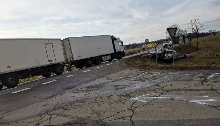 FOTO: V hudem trčenju avtomobila in tovornjaka moški izgubil življenje