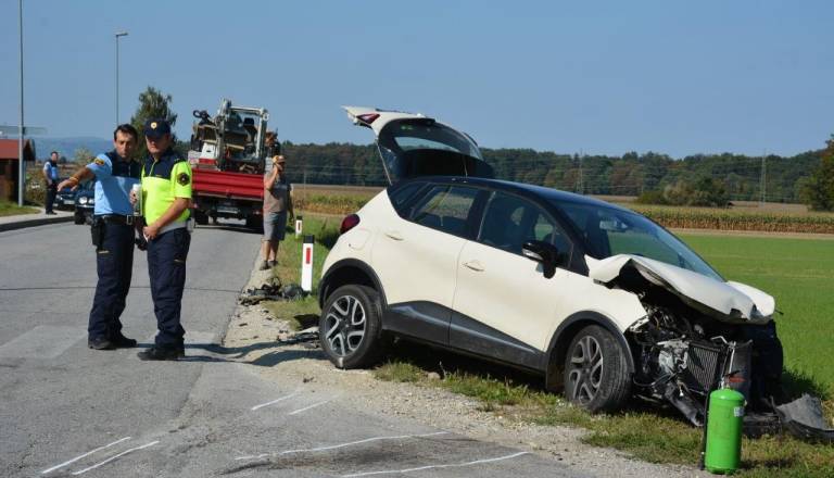 Trčila voznik avtomobila in kolesa z motorjem, slednji poškodovan