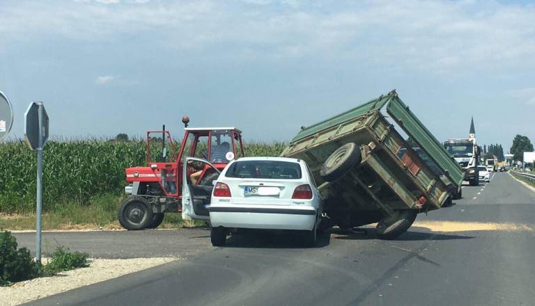 Z avtomobilom trčil v prikolico traktorja