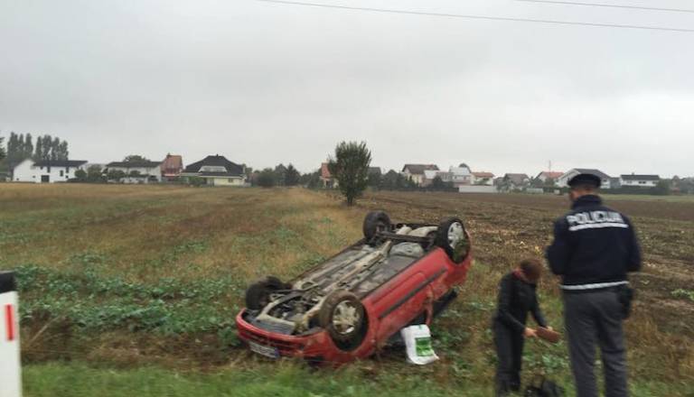 S Cliom zapeljala s spolzke ceste in se prevrnila