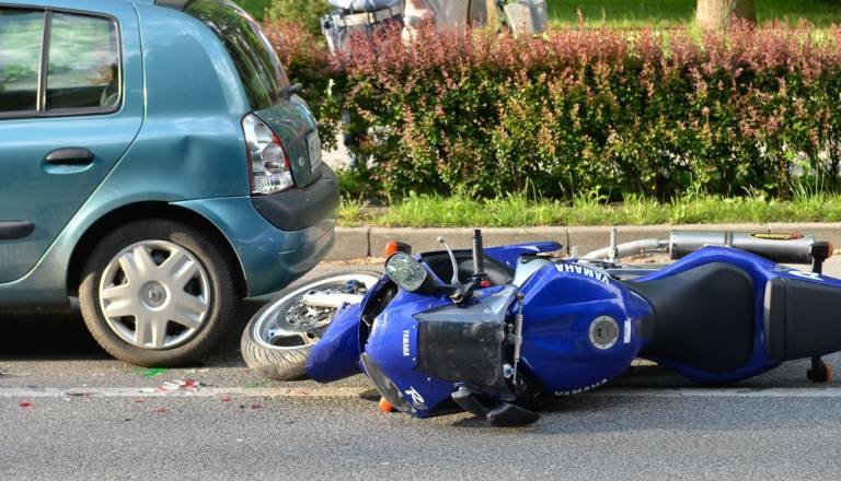 Trčila osebno vozilo in motorist, motorno kolo prepolovilo