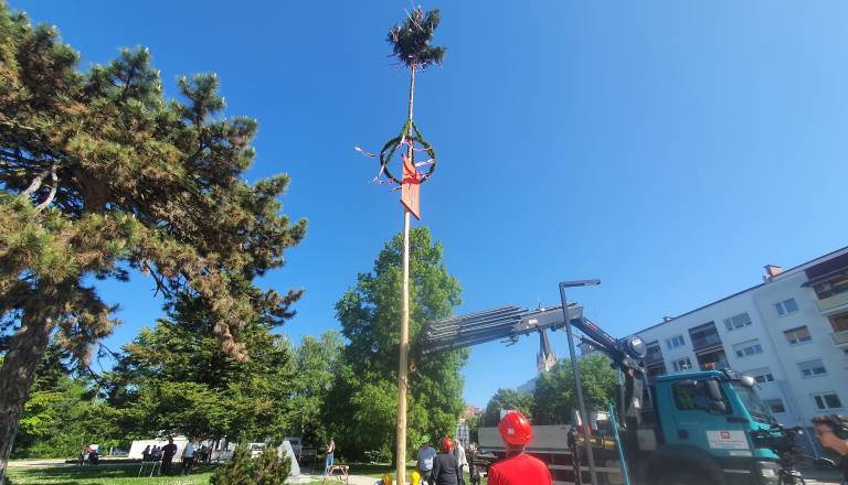 FOTO in VIDEO: Na Trgu zmage tudi letos tradicionalno postavili mlaj: »Živel prvi maj, praznik dela«