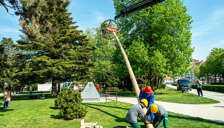 FOTO in VIDEO: Ob postavljanju mlaja na Trgu zmage izrazili tudi podporo zaposlenim v podjetju Moda Mi&Lan