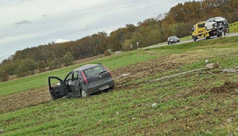 V nesreči na puconski ravnici poškodovan voznik, škode za tri tisočake