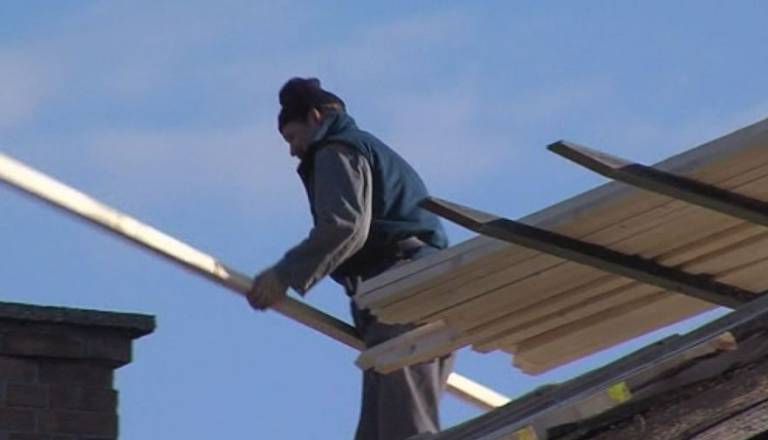 Med odstranjevanjem ostrejša nanj padel leseni tram in ga hudo poškodoval