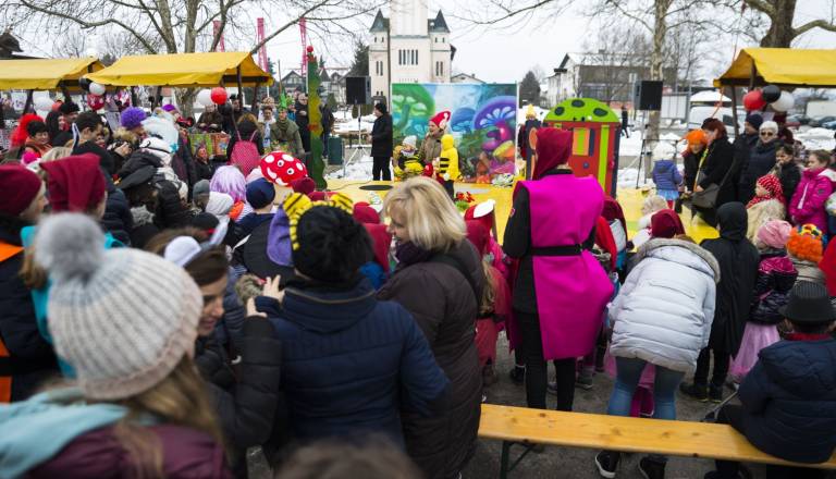 FOTO in VIDEO: Mursko Soboto preplavile pustne maske, več sto otrok rajalo na ploščadi pred gradom