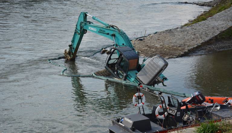 Šestnajsttonski bager uspeli rešiti iz Mure
