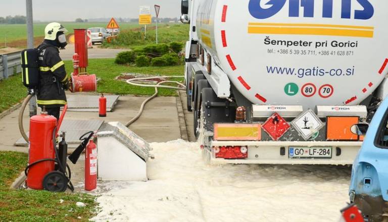 Med prečrpavanjem goriva v cisterno trčil avtomobil