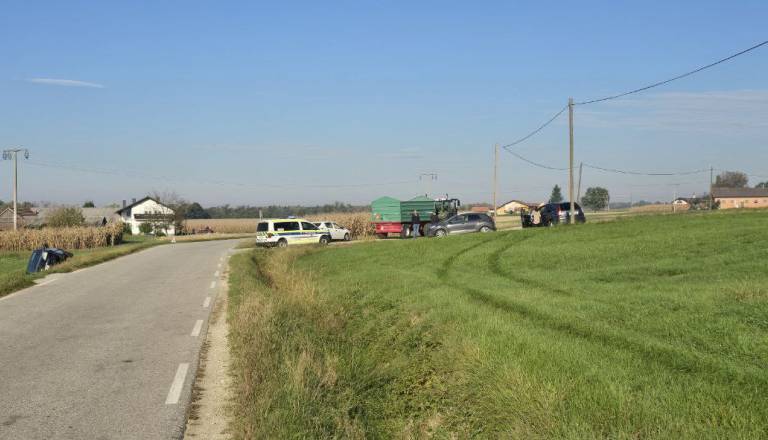 Počilo na Goričkem, z avtomobilom v ostrem ovinku s ceste