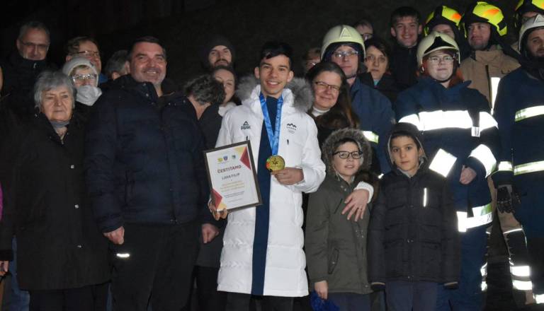 V Gornjih Slavečih z nočnim sprejemom presenetili zlatega skakalca Luko Filipa