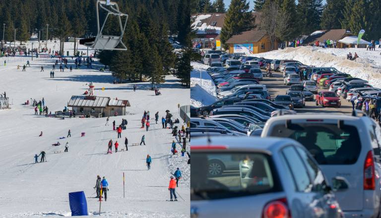 FOTO: Na Rogli množica obiskovalcev, parkirišča polna do zadnjega kotička