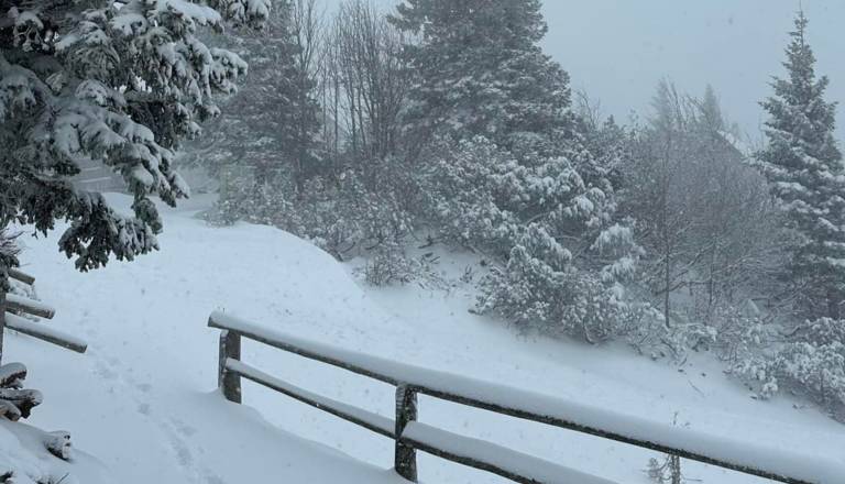 Snežna idila sredi pomladi: V višjih predelih države povsem zimske razmere, ponekod preglavice povzroča snegolom
