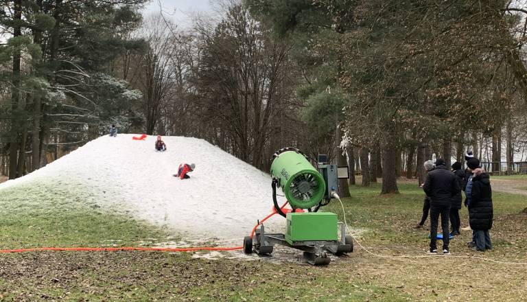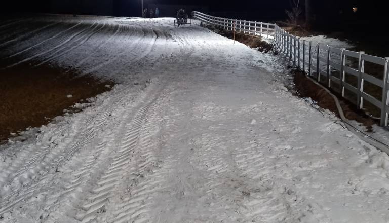 Ni snega? Na Goričkem jih to ni ustavilo, v vasi postavili sankaško progo