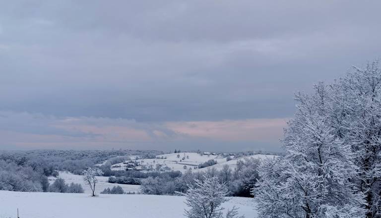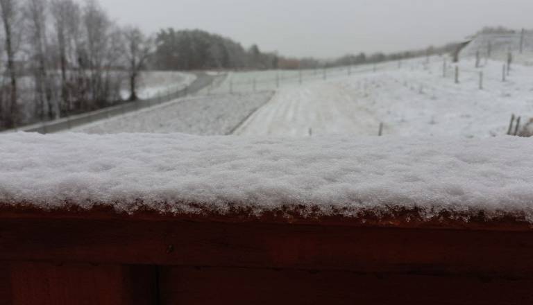 FOTO: Napovedi so se uresničile, na Goričkem so se prebudili v zasneženo jutro