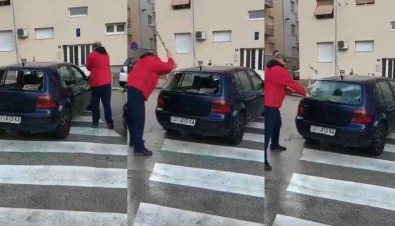 VIDEO: Moški z macolo na prehodu za pešce razbijal avto
