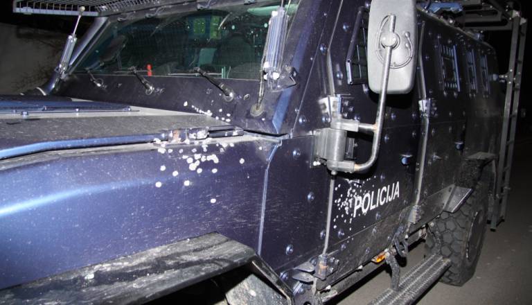 Policisti prejeli prijavo o streljanju: Prijeli 26-letnika, medtem ko so neznanci kamenjali policijsko vozilo