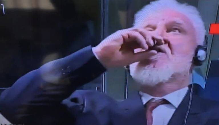 Obsojeni Praljak, ki je pred sodnikom spil strup, naj bi umrl