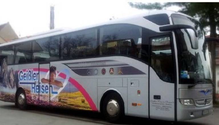 Na ukradenem nemškem avtobusu podoba ženske in Dolomitov