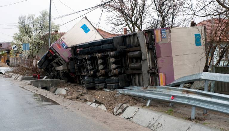 Tovorno vozilo se je prevrnilo na bok, posredovali gasilci