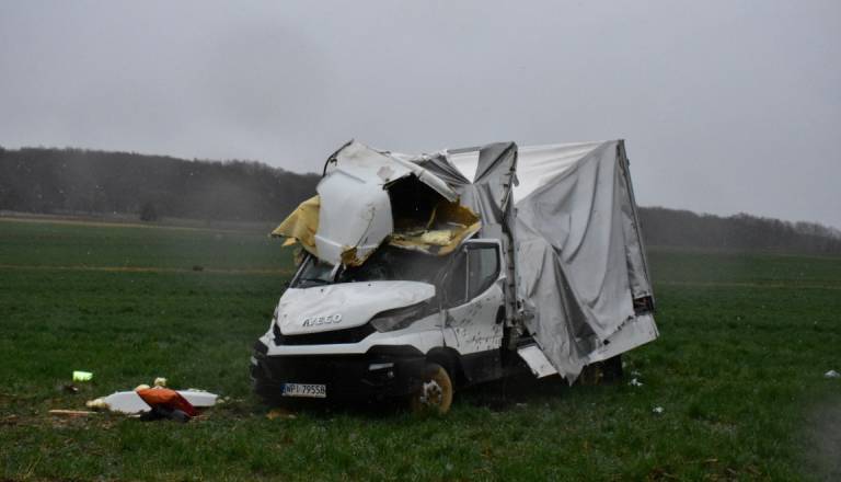 Odtujil tovorno vozilo, se zaletel v prometna znaka in peš zbežal po njivi