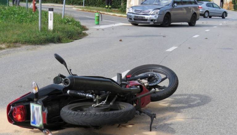 V trčenju avtomobila in motorista slednji podlegel poškodbam