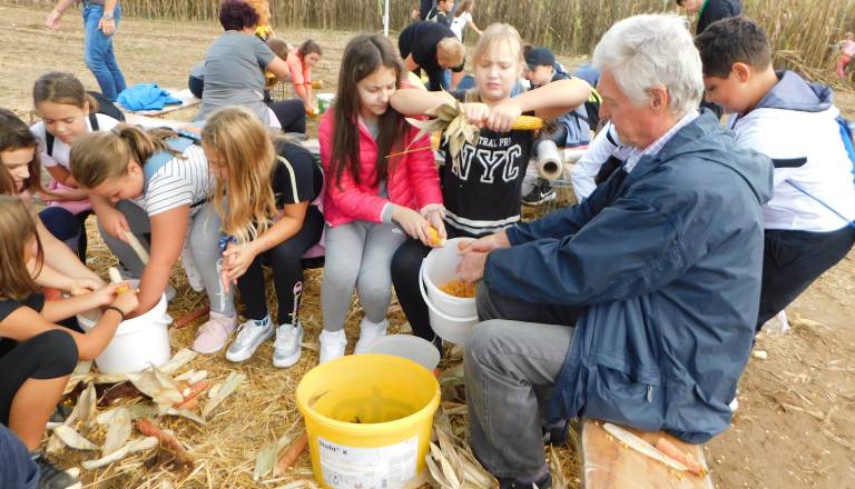 FOTO: Tišinski osnovnošolci ličkali koruzo in pobirali seme iz buč
