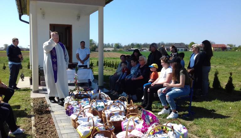 Prvi blagoslov velikonočnih jedi pri novi romski kapeli