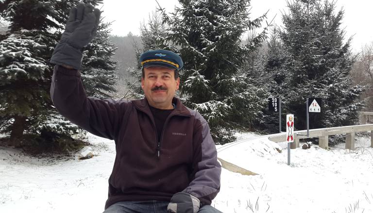 Vozi se z vlakom po 150-metrski železnici na svojem dvorišču