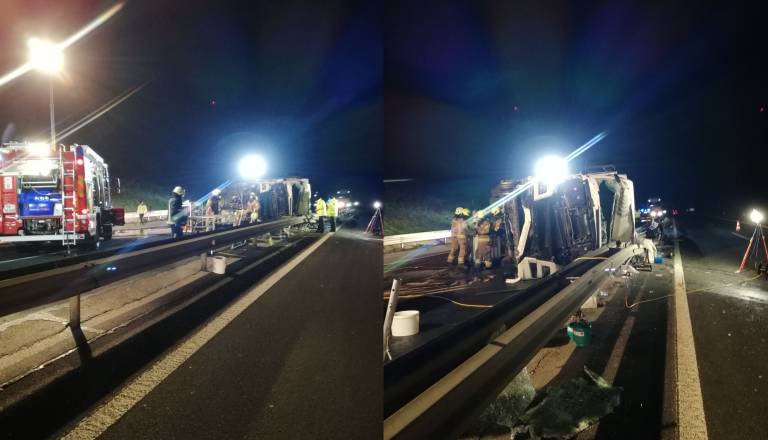 FOTO in VIDEO: Pomurska avtocesta zaprta zaradi nesreče, zaradi razsutega tovora zaprt še prehitevalni pas